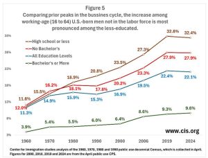 – L'immigration illégale doit être comprise dans le contexte de l’augmentation inquiétante depuis des décennies de la proportion d'hommes moins instruits nés aux États-Unis qui ne sont pas dans la vie active et qui coïncide avec l'augmentation rapide de l'immigration depuis les années 1960.