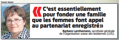 Tout cela pour lire aujourd'hui, dans Le Matin, de la bouche même de la secrétaire générale de l'association suisse des lesbiennes, Barbara Lanthemann, que:
