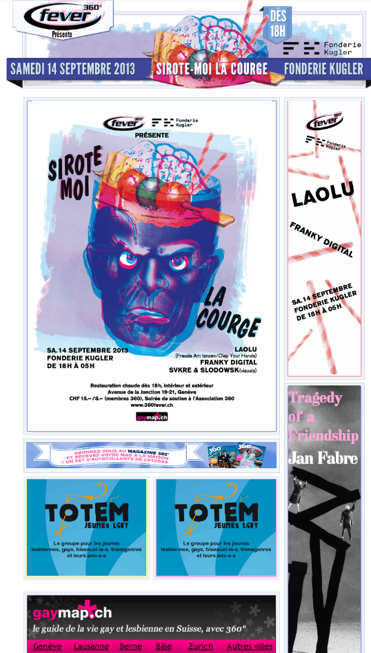 Cher confrère, j’ai beau relire votre article, je ne vois pas quel peut bien être votre dessein. Pourquoi juxtaposer des faits avérés (vos sources sont certes exactes) de manière aussi tendancieuse : Totem a en commun avec les soirées 360° (dont sont tirées 2/4 photos) autant qu’un club de foot pour ados pourrait en avoir avec l’Oktoberfest de Münich ! Savez-vous que dans notre pays – en 2013 – les jeunes LGBT ont 2 à 5 fois plus de risques de tentatives de suicide que chez les jeunes hétérosexuels, NON à cause de leur orientation sexuelle et/ou identité de genre mais parce que les jeunes victimes de racisme, d’islamophobie ou d’antisémitisme par exemple trouvent une écoute auprès de leurs parents, qui pourraient avoir vécu la même chose, s’ils ne trouvent pas ce soutien à l’école ? Les jeunes LGBT ne peuvent eux souvent pas compter sur un appui parental, bien au contraire, notamment parce que ces mêmes parents sont souvent démunis voire stigmatisés par la société ou par certains articles comme le vôtre. Alors plutôt que de vous décrédibiliser en parlant d’ « entrisme sans limite » et autres arguments racoleurs, n’hésitez pas à démystifier vos principes surannés en les confrontant à la réalité du 21e siècle (cf. http://www.stopsuicide.ch). A bon entendeur. TM