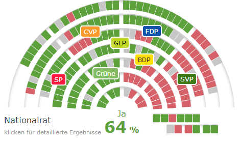 Les Verts: 100% ; Les Verts-libéraux: 100%, PS: 98%, PBD 86%, PLR 82%, PDC 75%, UDC... 0%.