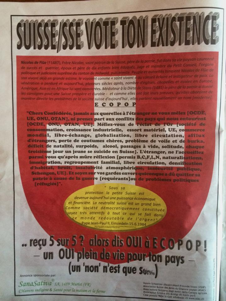 Je vous avoue, entre nous, qu’à chaque votation importante pour notre Pays, je sollicite, en prière St Nicolas de Flüe afin qu’il guide l’esprit de nos compatriotes pour le meilleur avenir..