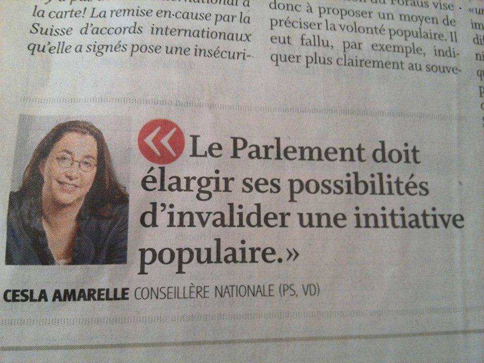 Mais cesla amarelle est vraiment une bedoume j’ai jamais vu un truc pareil si elle veut plus de marge pour annuler des résultats de votations qui lui plaisent pas on peut aussi le retourner contre le parti socialistes faut faire très attention avec ça parce que la on joue avec le feu avec les fondements de notre démocratie