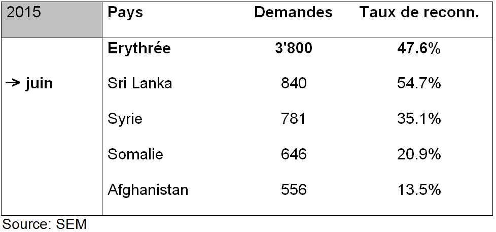 - la majorité des requérants d'asile proviennent d'Erythrée puis du Sri Lanka. Il ne s'agit donc pas de régions en crise comme on le prétend souvent;