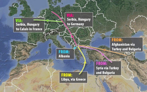 Invasion déclenchée par les instigateurs des guerres états-uniennes. Les premiers arrivants étaient des hommes jeunes mais on s’aperçoit maintenant que des familles entières suivent le mouvement. Perfide Albion ferme la porte et reproduit la poche de Calais. Destination affichée des migrants : la France, la Suisse et l’Allemagne. Les pays du nord de l’Europe aussi.