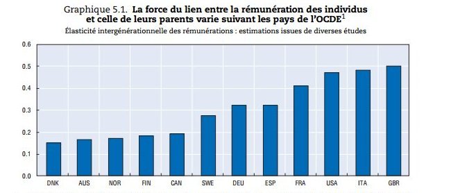 Aux antipodes des discours politiques mielleux, les études sociologiques nous montrent combien la société française est de nature élitiste, centrifuge, hyper sélective et finalement sans pitié. Avec le UK, l’Italie et les USA4, la France fait partie des quatre pays de l’OCDE ayant la plus faible mobilité sociale !