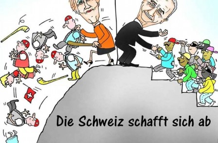 Et pendant que la stupide caniche part renifler l’arrière-train de Juncker à Bruxelles, que va décider le gouvernement allemand? Renvoyer à grands frais les clandestins non admis d’où ils viennent, ou les laisser filer gratuitement vers la frontière Suisse?
