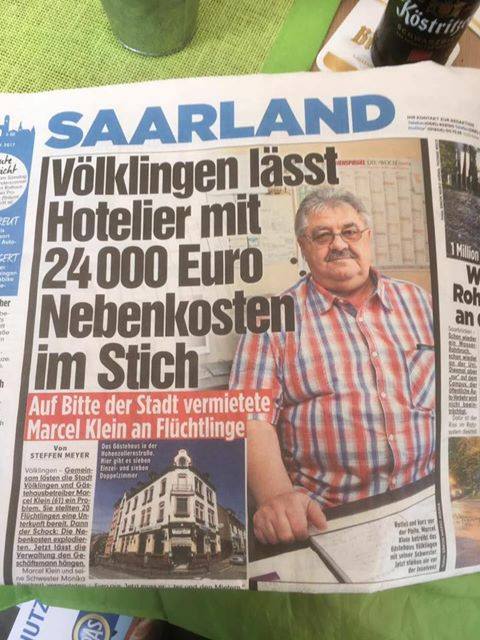 La ville de Völklingen et l'hôtelier Marcel Klein (61 ans) avaient résolu ensemble un problème. Ils avaient mis à disposition un hébergement pour 20 réfugiés.