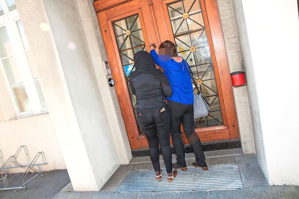 C'est avec le visage totalement encagoulé que Lisa* (à gauche sur la photo), 16 ans, est apparue lundi matin au Tribunal de district d'Aarau (AG).