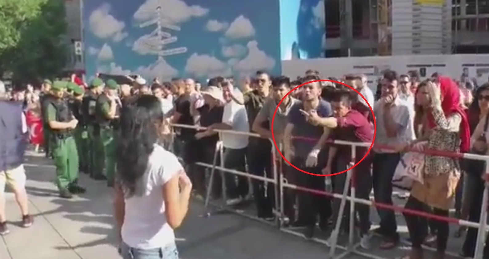 (On peut voir plusieurs musulmans sourire après le crachat, dont la femme musulmane qui a provoqué auparavant.)