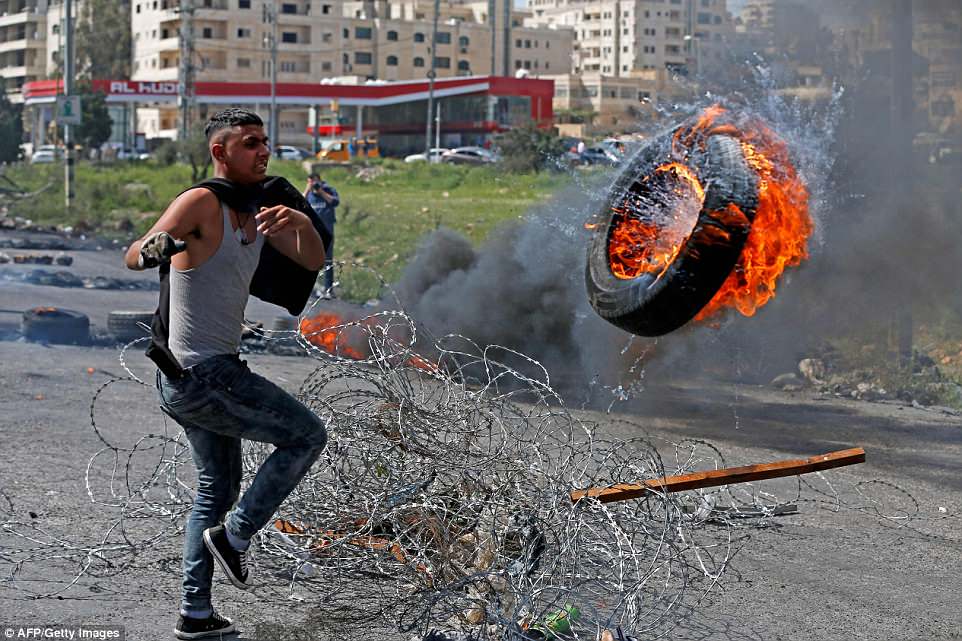 De jeunes Palestiniens collectent les vieux pneus pour les apporter à la frontière israélienne. Le but est de les brûler pour que la fumée empêche l’armée israélienne de tirer sur les manifestants de la « Marche du Retour ». On collecte aussi des miroirs pour éblouir les soldats israéliens.