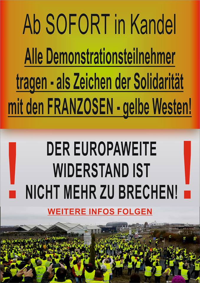 Allemagne – Les gilets jaunes (“gelbe westen”) vont faire leur apparition outre-Rhin. Comme en France, il s’agit de protester contre le gouvernement. Mais en Allemagne, c’est contre la politique migratoire d’Angela Merkel que les Gilets Jaunes vont se rassembler le 1er décembre.