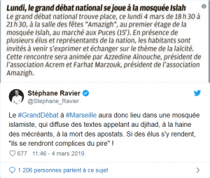 La mosquée Islah de Marseille, accusée de promouvoir la haine par le sénateur RN Stéphane Ravier, a hébergé lundi soir une réunion publique dans le cadre du “grand débat national” lancé par Emmanuel Macron. Depuis, le site Internet de la mosquée a disparu.
