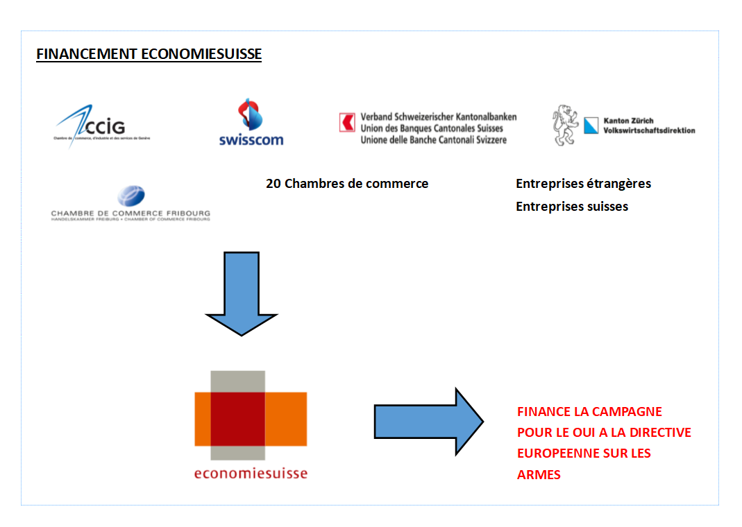 - Economiesuisse reçoit des financements de ses membres, à tout le moins des cotisations de membres dont on ignore tout des montants qui ne sont pas rendus publics, Economiesuisse est une association privée.