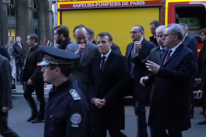 Sans oublier ceci : Macron et Philippe sont pris de fou rire sur le chemin pour aller voir la cathédrale dévastée par les flammes, comme s’ils n’en avaient rien à foutre de l’histoire de France.