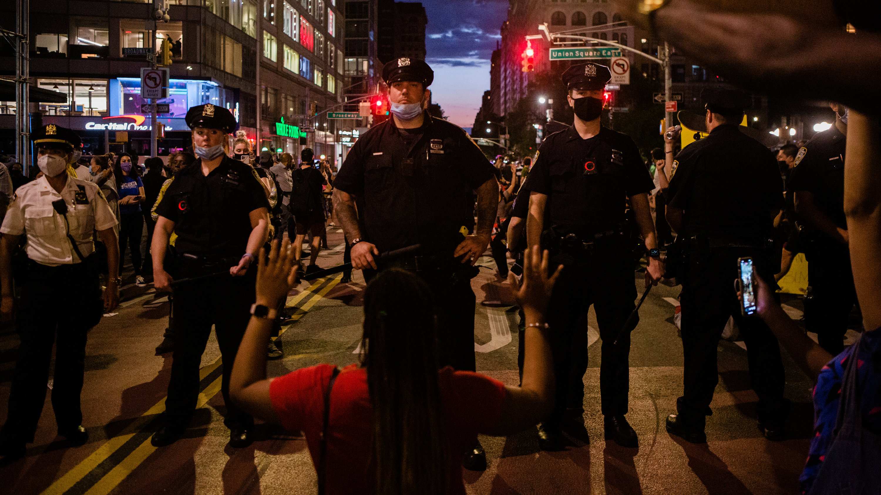 ” … le maire de New York (Bill de Blasio) promet de réduire le financement du NYPD, la police de la ville”