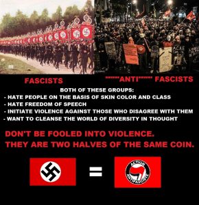 « Les Antifas ont pour objectif la révolution et la guerre civile, objectifs qui ont pour corollaire de faire taire les anticommunistes aux Etats Unis. Traiter les partisans de Trump et les patriotes américains de nazis et de racistes est un comportement classique de ces communistes de gauche.
