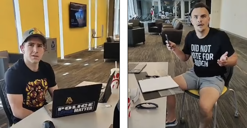 Deux étudiants blancs de l’université d’État de l’Arizona ont été contraints de quitter un “espace d’apprentissage multiculturel” après que deux militantes du mouvement BLM ont contesté les autocollants “Police Lives Matter” apposés sur leurs ordinateurs portables.