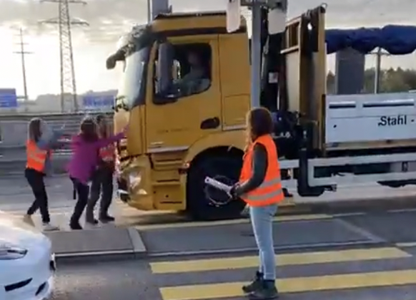 C'est leur cinquième action en une semaine: les militants de Renovate Switzerland sont remontés à l'assaut mardi matin, cette fois-ci à Berne. Mais les automobilistes se sont montrés plus agacés que d'habitude. Notamment un conducteur de camion.