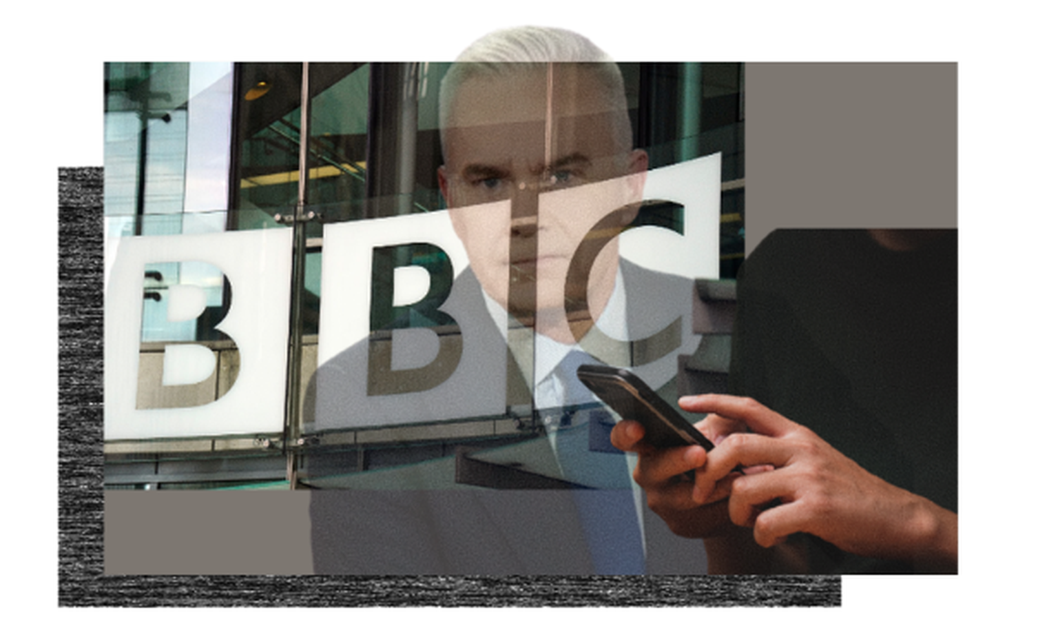 Depuis une semaine, l'une des agences d’information les plus respectées du monde est ébranlée par un scandale sexuel impliquant son présentateur vedette, Huw Edwards. montage: watson