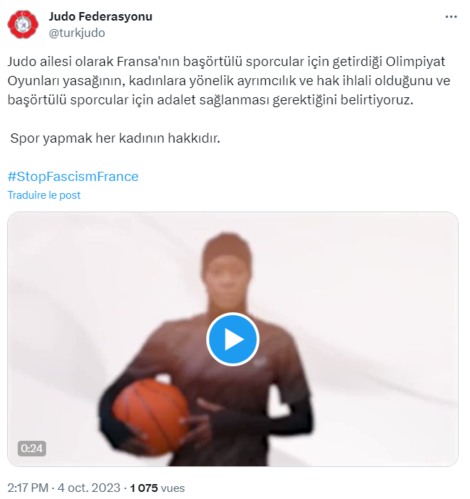 L'interdiction par la France aux athlètes portant le foulard de participer aux Jeux Olympiques de Paris en 2024 est une violation inacceptable des droits et libertés des femmes.