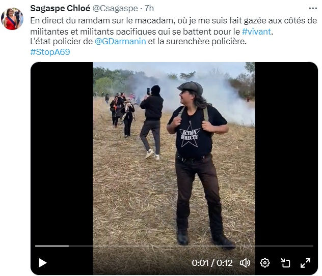 Saïx (81) : une conseillère de Paris, élue EELV du 11ème, revendique participer à la manif s’opposant à la construction de l’A69 aux côtés de “militants pacifiques”, l’un d’eux porte un tee-shirt du groupe terroriste communiste “Action Directe”