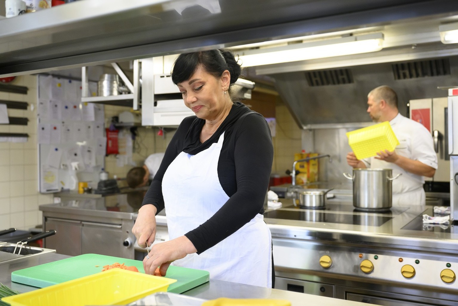 L'Ukrainienne Olha Shymko, l'une des premières personnes à avoir obtenu le statut de protection S, dans la cuisine de l'auberge Ochsen. Image: KEYSTONE