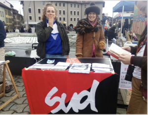 Pensons seulement aux foules de jeunes, en pleine hypnose de masses climatistes, par milliers amenées par le bout du nez à manifester, écoles fermées pour l’événement, toutes dirigées à entendre des discours néo-communistes révolutionnaires, attendues par de nombreux stands de recrutements, comme en témoigne nos photos, mais aussi des recruteurs, comme les militants de la cause palestinienne.
