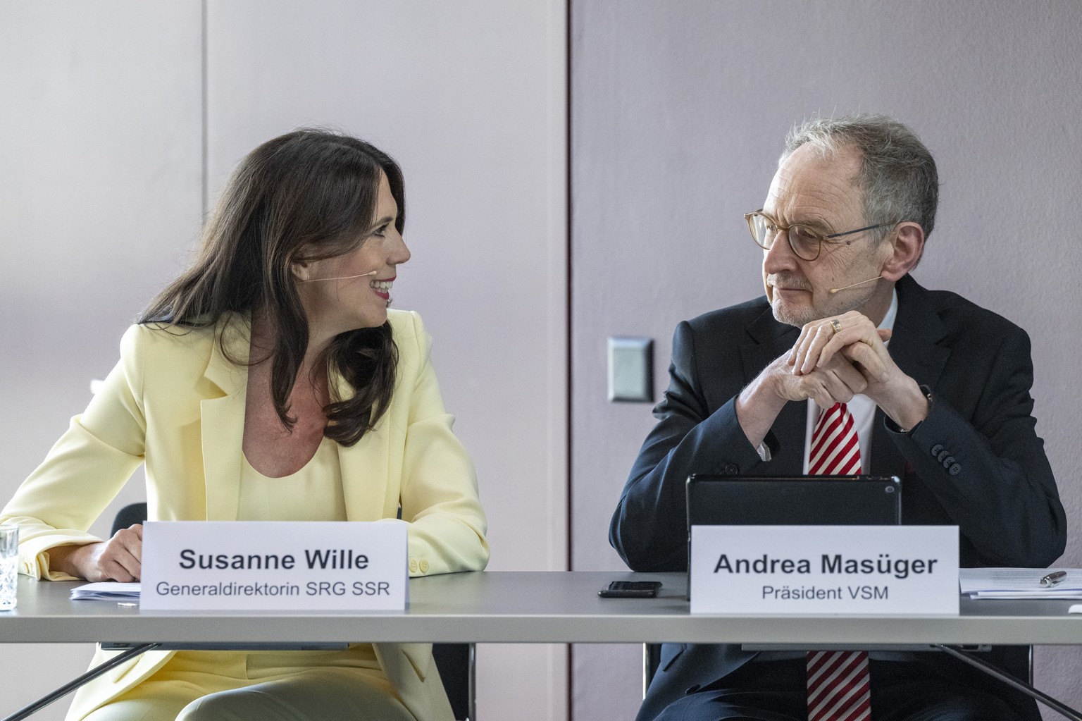 Le président du VSM Andrea Masüger a estimé pour sa part que le «vent a tourné» à la SSR avec l'arrivée de Susanne Wille à la tête du média de service public. La «percée» annoncée jeudi est importante pour l'avenir du journalisme en Suisse. Le Grison a souligné que le système est sous forte pression, avec les trois quarts des revenus publicitaires aspirés par des géants comme Google ou Facebook.