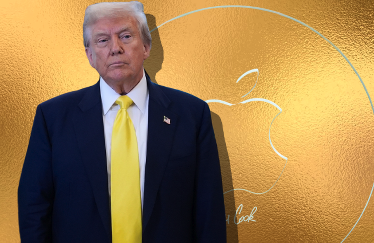 Donald Trump et le cadeau qui lui a été offert par Tim Cook, PDG d'Apple, le 6 août 2025 à Washington. Image: AP