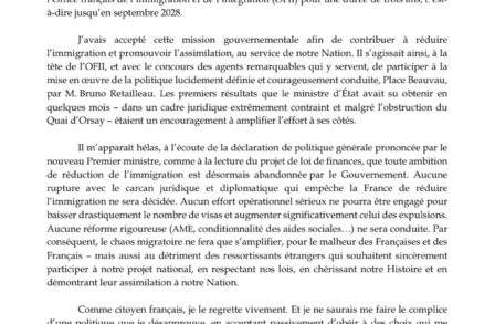 Un mois après sa nomination, Guillaume Larrivé quitte la direction de l’Office français de l’immigration et de l’intégration (OFII), regrettant l’abandon de « toute ambition de réduction de l’immigration par le gouvernement »