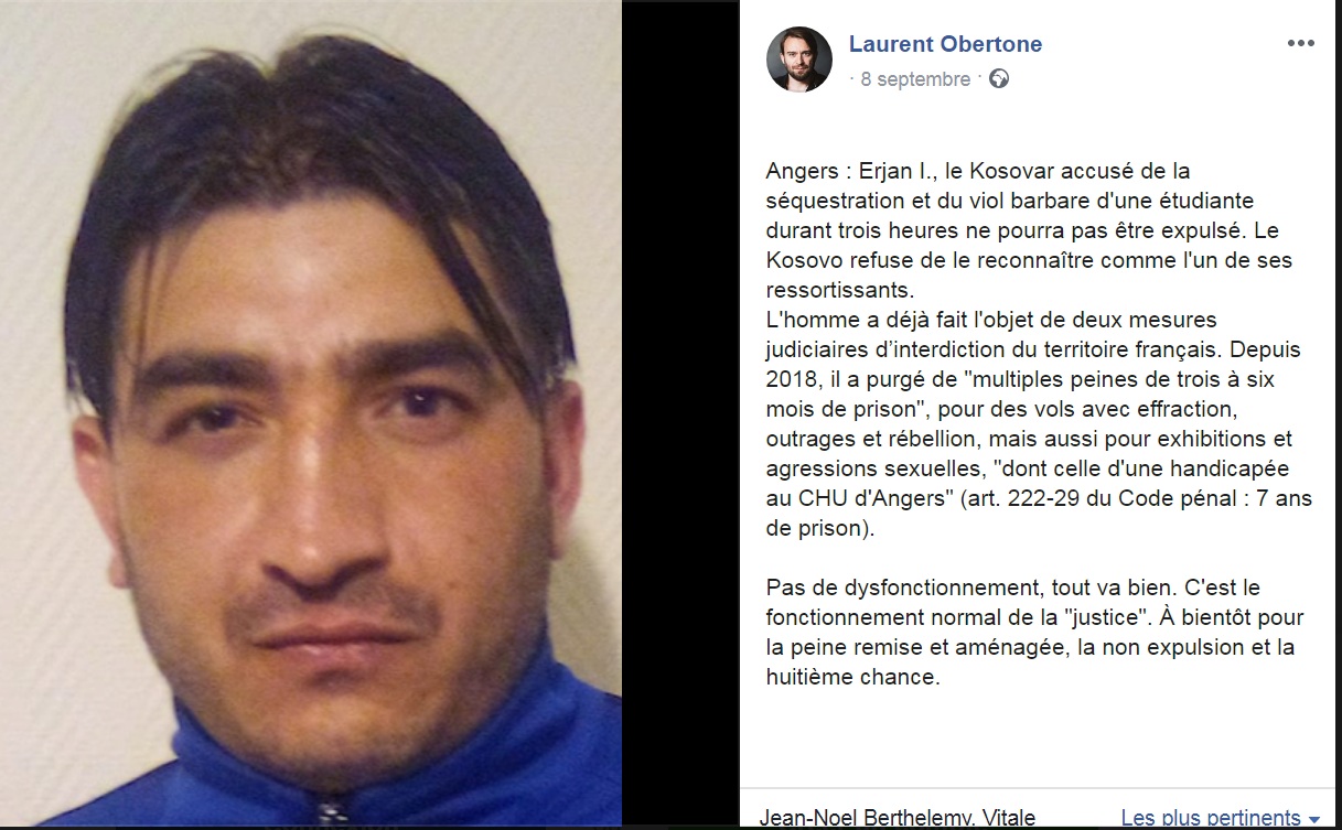 Erjan I., qui a purgé ses multiples peines de trois à six mois de prison, n’a cependant pas été expulsé du territoire français. En cause, la non-reconnaissance des pays auxquels il prétend appartenir. «Erjan I., démuni de document officiel, s’est déclaré de nationalité kosovare mais le Kosovo ne l’a pas reconnu comme l’un de ses ressortissants», a indiqué la préfecture du Maine-et-Loire.