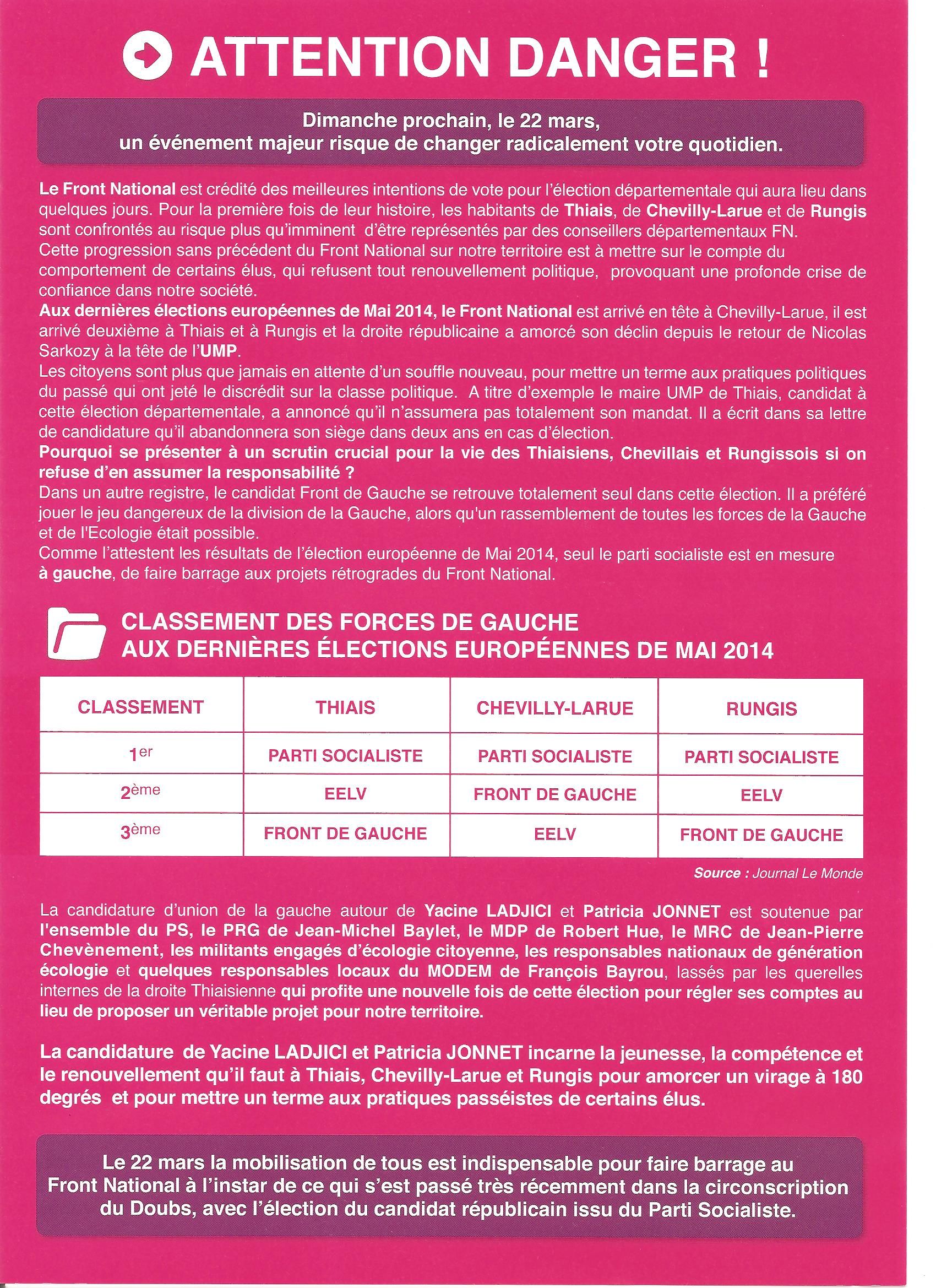 Voici un exemple de tract déposé dans les boites aux lettres dans le Val d'Oise ...
