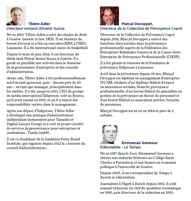 Chose plus surprenante, on découvre que ce journaliste, Emmanuel Garessus, est visible sur le site de la banque d'Edmond de Rothschild en compagnie de... Tibère Adler, Directeur romand d’Avenir Suisse, sous la rubrique "Séminaire de la prévoyance professionnelle". Dès lors, cet article serait-il l'image d'une oligarchie qui fait son auto-promotion en prenant le public pour un idiot?