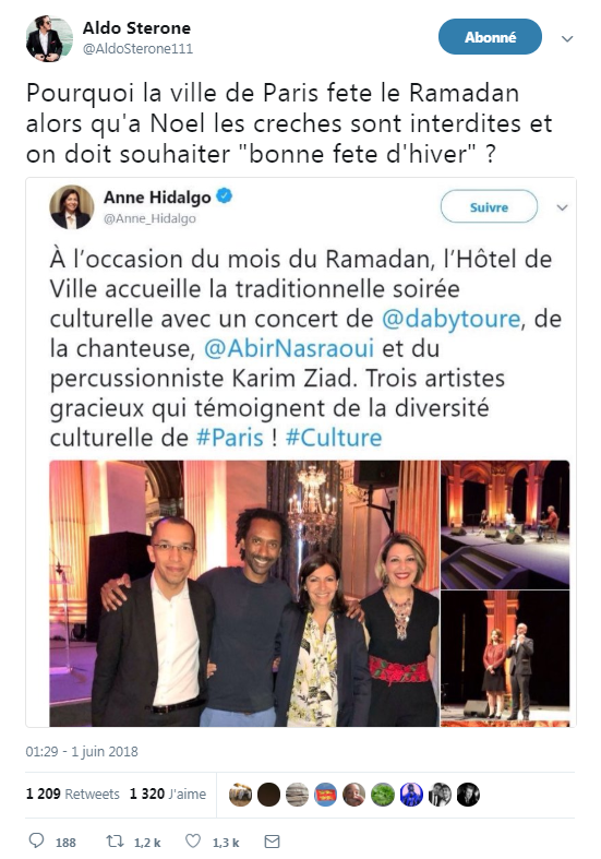 L’Hôtel de Ville de Paris accueille ce qu’elle appelle la « traditionnelle soirée culturelle » à l’occasion du mois du Ramadan 2018.