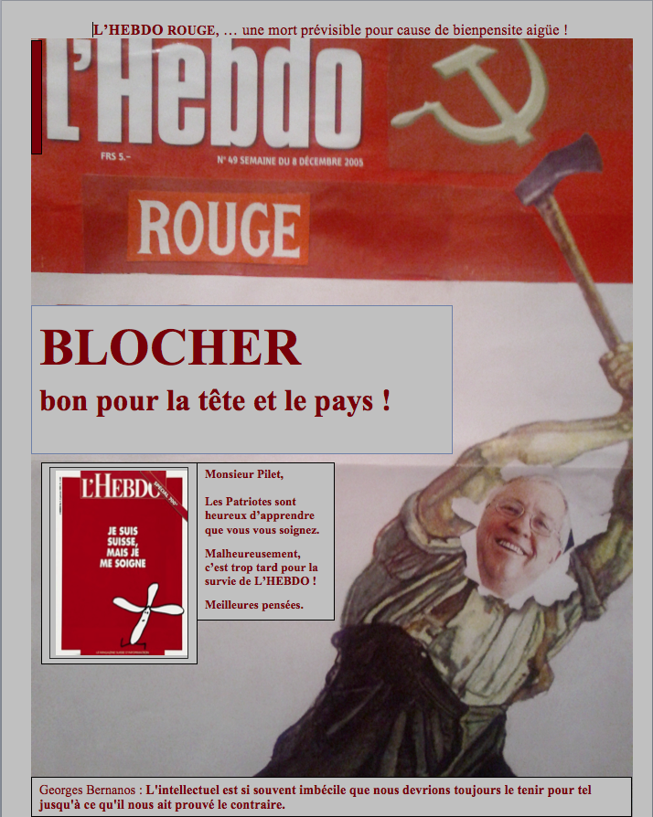 Dès lors, l'Hebdo s'évertue à chercher des boucs émissaires. D'autres auraient eu l'intelligence de ne plus se faire remarquer après une telle débâcle...