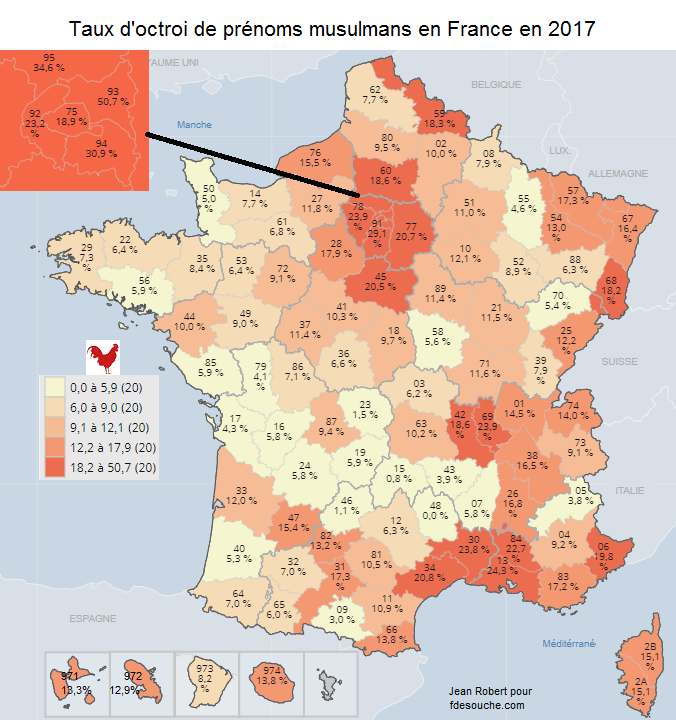 Afin de disposer de chiffres indiscutables, nous ne décomptons les « prénoms mixtes » que pour moitié dans le décompte des prénoms musulmans.