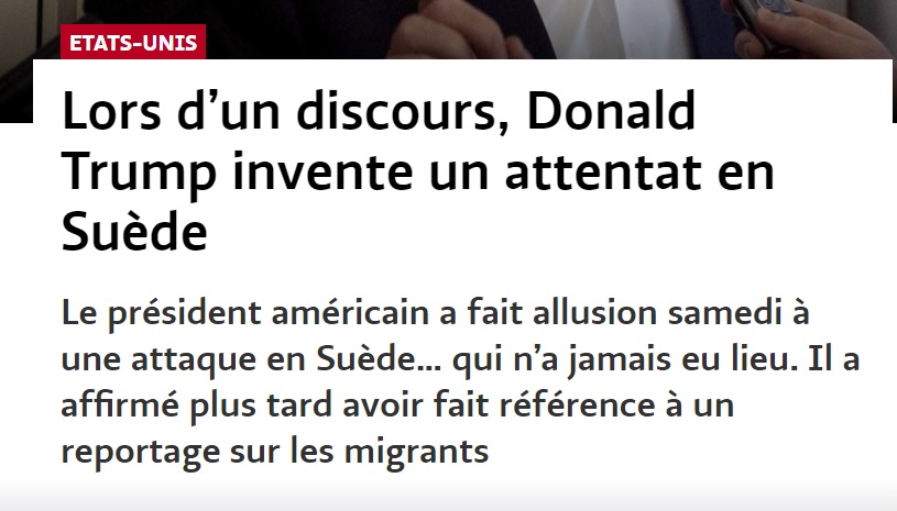 Donald Trump n'a jamais parlé d'un "attentat" en Suède. Si on ne veut pas être accusés de "fake news" soyons rigoureux. #Pasfacile — Jean-Bernard Cadier (@jbcadier) 19 février 2017
