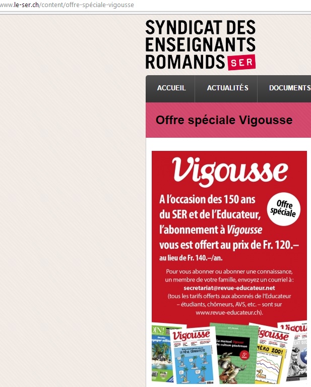 A l'occasion des 150 ans de l'Educateur et du SER, Vigousse propose de vous abonner ou d'abonner un de vos proches à un prix spécial !